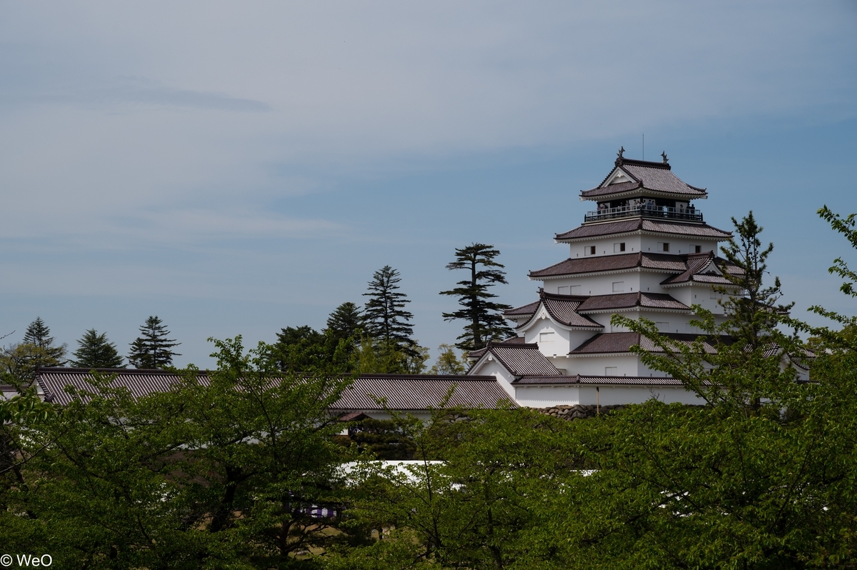 その上の天守はコンクリ製だが、外観は戊辰戦争前の姿をほぼ忠実に再現している。構造は層塔式で、関ヶ原後の築城技術のトレンドに沿っている。